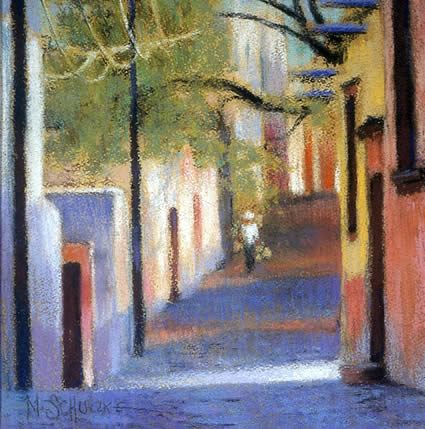 San Miguel Morning #39 x 9 pastelPrivate collection............Rhythms and harmonies, in a quiet side street in old San Miguel de Allende. ..................