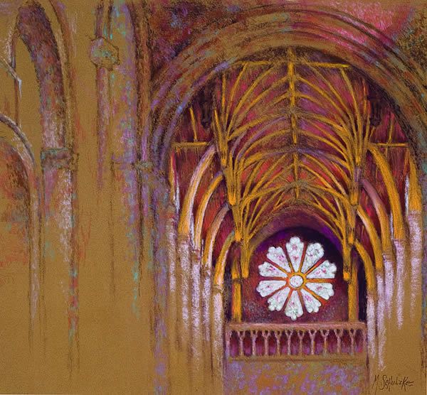 Magdalen II23 x 21 pastel............A view of the Rose Window in the Magdalen College Chapel, Oxford. As many of the artists works are, this is an exercise in simplicity of means. ..................