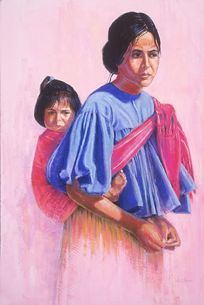 Tarahumara Woman & Child 31 x 21 pastelPrints Available .................. A young Tarahumara mother with her child, in the depths of Mexico's Copper Canyon.