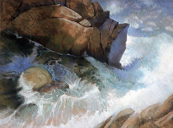 Maelstrom19 x 25 pastel..............Yosemite, again: A cataract tumbling below gives us a sense of being engaged in the rushing water - a river runner's dream. ..................