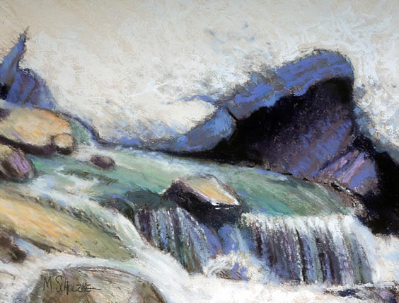 South Yuba, II5.5 x 7.5 pastel..............On the South Yuba River, early spring brings melting snows and rising waters. ..................