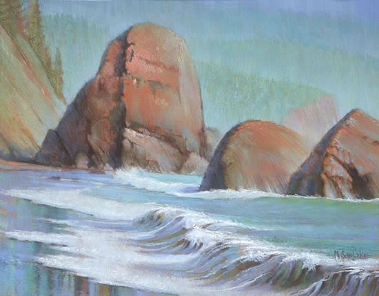 Sentinel, II18 x 24 pastel..............Massive monoliths known as "stacks" stand guard over the Oregon shoreline. ..................