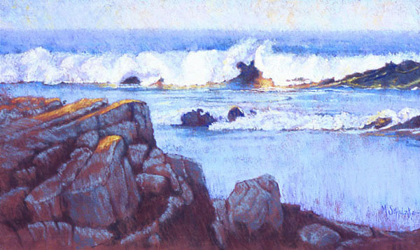 Entrada Seascape24 x 14 pastel............The shores of the Pacific near Asilomar is one of the artist's favorite haunts, especially in the dramatic light of early morning and late afternoon. ..................